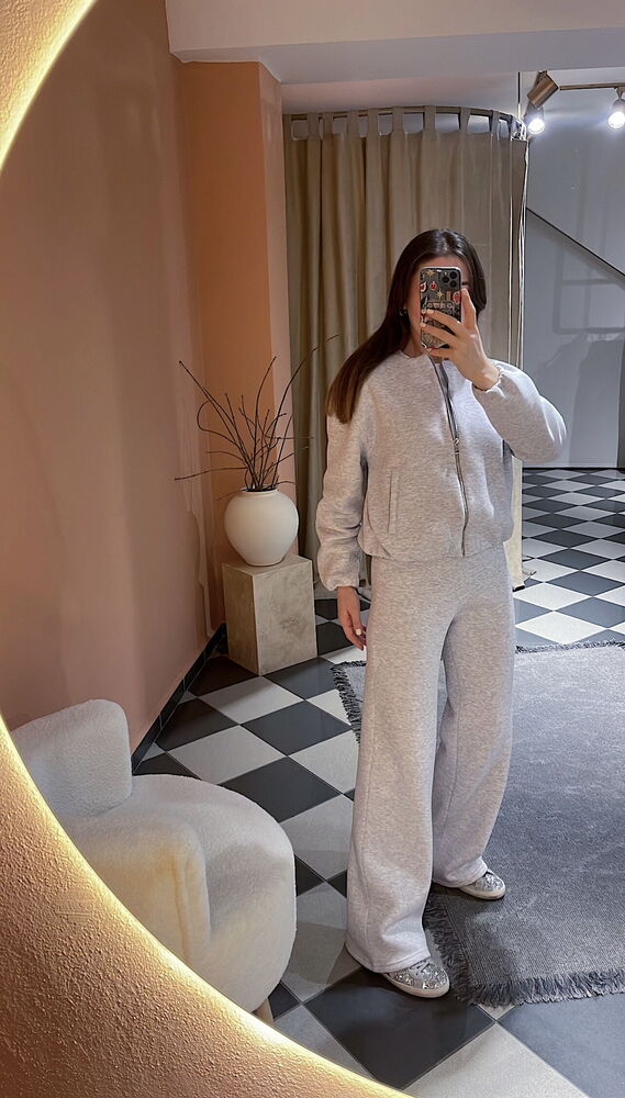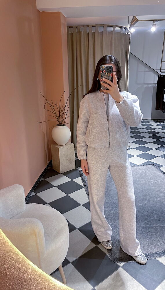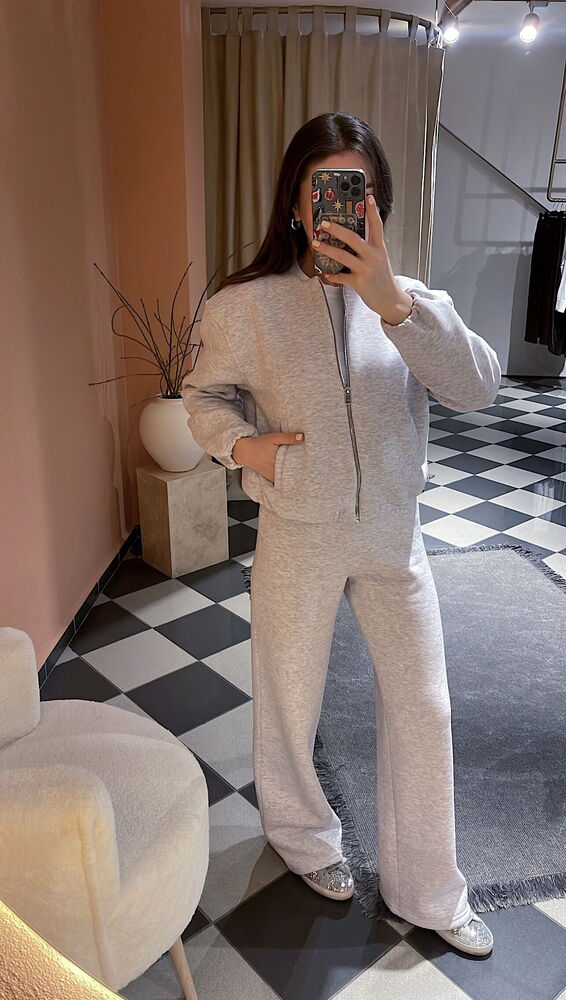 açık gri renk içi şardonlu tam kalıp eşofman takım