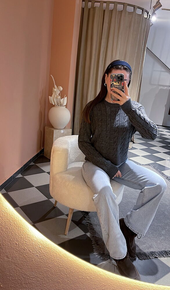 örgü desenli standart beden antrasit renk kazak