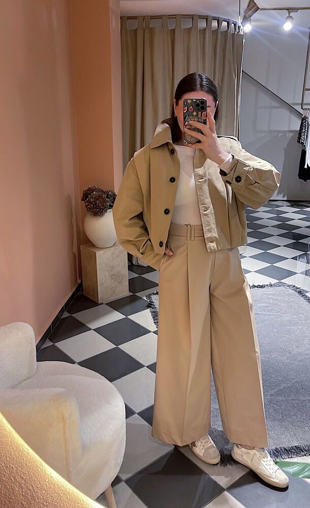 bilek boy Camel renk tam kalıp yüksek bel palazzo pantolon